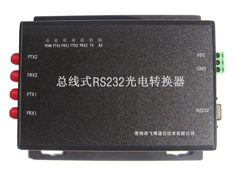 总线式232光电转换器 产品型号:FO232M(S)2 (壁挂式) DGFO232M(S)2(导轨式) 总线式232光电转换器采用光纤作为RS232总线的传输介质,将现场不同地理区域分散分布的节点、从站与中心主站通过光纤连成一可靠的RS232光总线网络。光纤传输以其可靠性、安全性和保密性等优点,解决了通讯距离远与通讯速率高、节点多且分散的矛盾,同时也解决了电磁干扰、地环干扰和雷电破坏的难题,赢得了众多的通信专家的青眯,成为通信组网的首选方案,广泛应用于各种工业控制、电力、银行等对数据通信质量要求较高或电磁干扰大,静电、雷击、地电位差大的应用场合。 性能参数: ※ 电口:RS232 DB9 ※ 速率:0~115.2kbps自适应 ※ 光口:ST接口 ※ 适用光纤:9/125um单模或62.5/125um多模 ※ 波 长:1310nm或850nm ※ 传输距离:2Km(多模)或25KM(单模)距离可根据用户要求特殊定制 ※ 误码率: ≤10-9 ※ 电源:AC/DC220V、AC/DC110V、DC5V、DC12V、DC24V、DC48V 可选 ※ 产品外形:壁挂式或导轨式 ※ 工作温度: -20℃~+70℃ ※ 相对湿度: 0~95% ※ 适用于工业控制环境